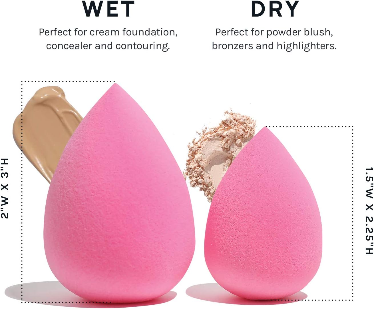 Experience the super soft texture of these beauty sponges, which effortlessly blend your makeup for a seamless finish. The unique shape of each sponge allows for precision application in hard-to-reach areas, making it perfect for contouring, highlighting, and setting your makeup.
